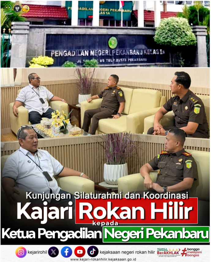 Kepala Kejaksaan Negeri Rokan Hilir, Bapak Firdaus, S.H., M.Hum., M.M., M.I.Kom., melaksanakan kunjungan silaturahmi dan koordinasi kepada Ketua Pengadilan Negeri Pekanbaru yang bertempat di Kantor Pengadilan Negeri Pekanbaru.