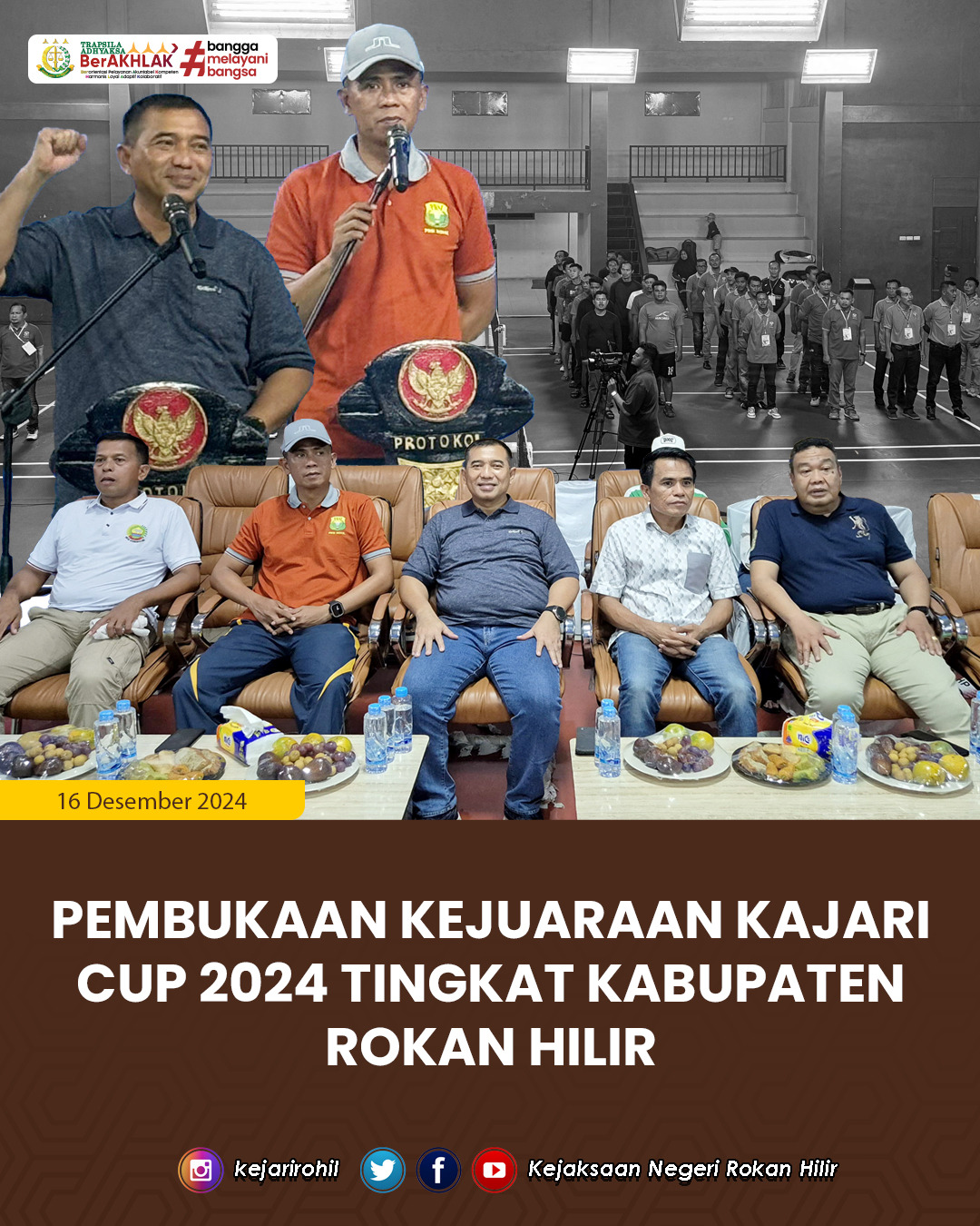 Kepala Kejaksaan Negeri Rokan Hilir Andi Adikawira Putera, S.H., M.H. melakukan pembukaan Kejuaraan Kajari Cup 2024 Tingkat Kabupaten Rokan Hilir yang dimana Kejuaraan ini diikuti oleh U-17 dan Senior.