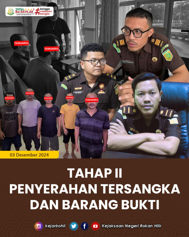 Bahwa Telah dilaksanakan Serah Terima Tersangka dan Barang Bukti (Tahap II) dari Penyidik ke Penuntut Umum pada Kejaksaan Negeri Rokan Hilir bertempat di ruang Tahap ll Kejaksaan Negeri Rokan Hilir.